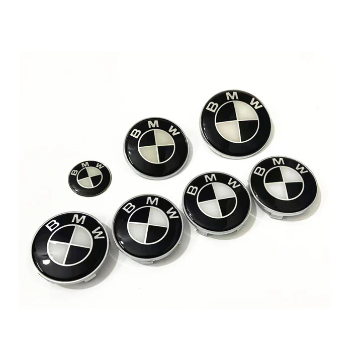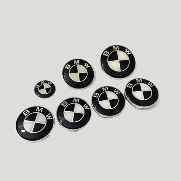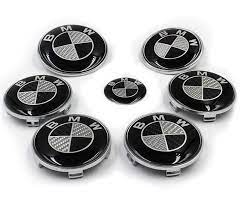 Full Set of BMW Carbon Black Boot Bonnet Badges Alloy wheel caps x7 Description